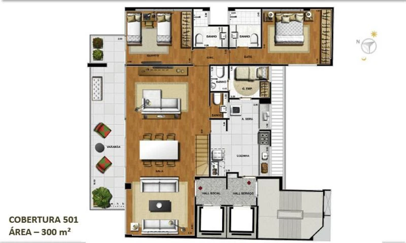 Cobertura de 3 quartos com 300m².
