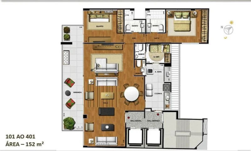 Apartamentos de 3 Quartos, com 152m².